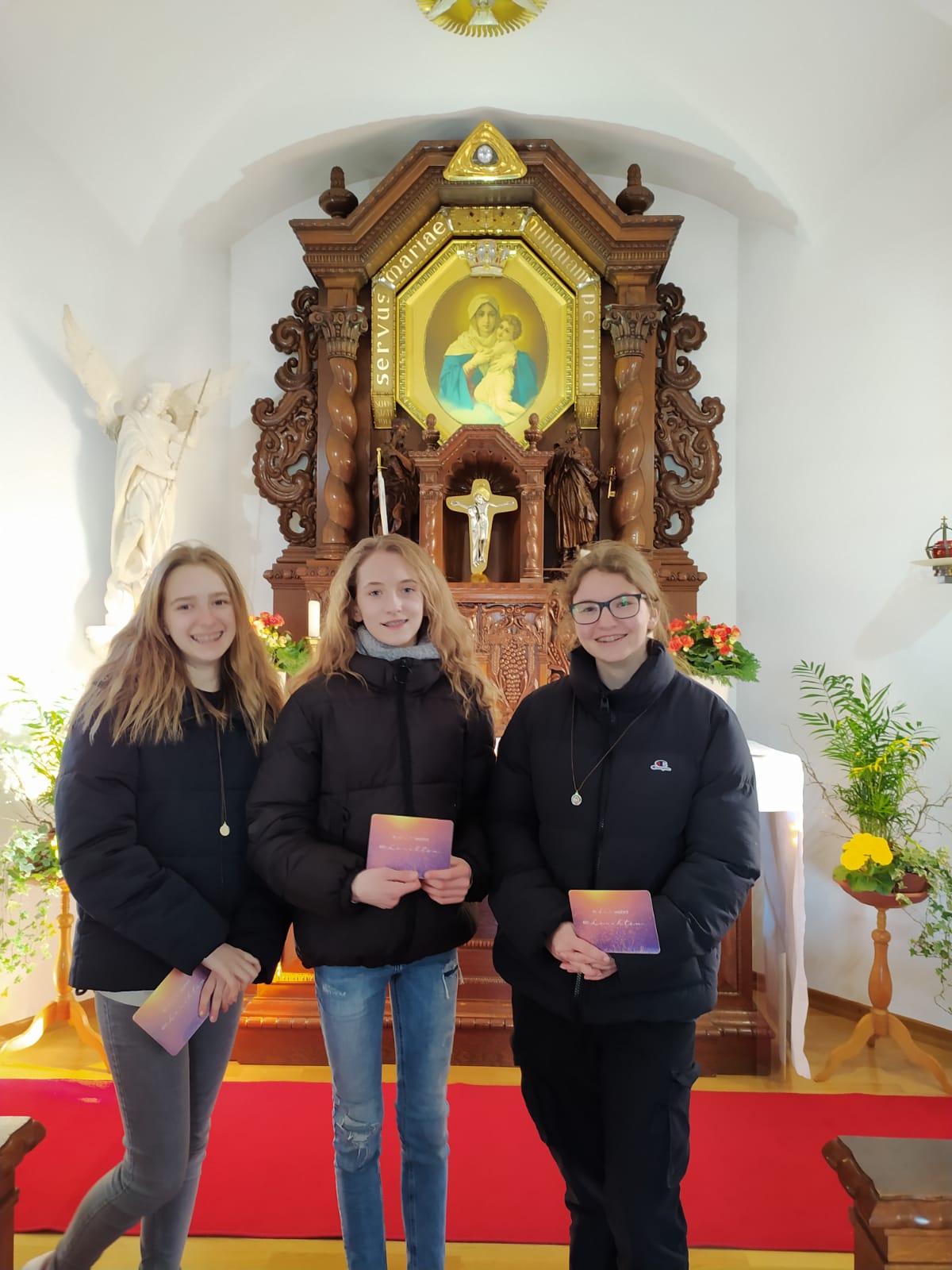 In der anderen Gruppenstunde haben sich unsere "alten Häsinnen" auf ihre Marienapostelweihe vorbereiten können. Was heißt Liebesbündnis für mich? Wie ist eigentlich Schönstatt entstanden? Und wie kann ich als Apostel für Maria in die Welt hinausstrahlen? In regem Austausch sind wir dieses Fragen auf den Grund gegangen und wir sind stolz, dass drei unserer Mädels "JA!" zu ihrem Bündnis mit der Gottesmutter gesagt haben.